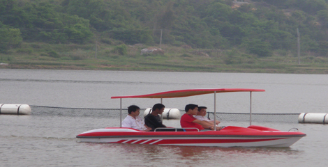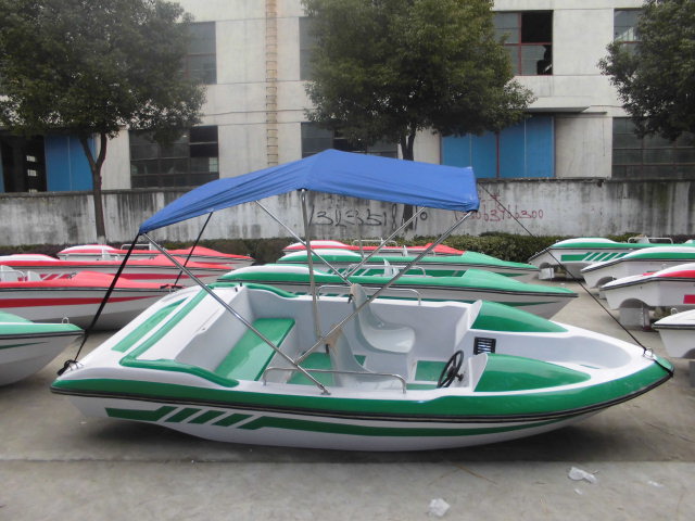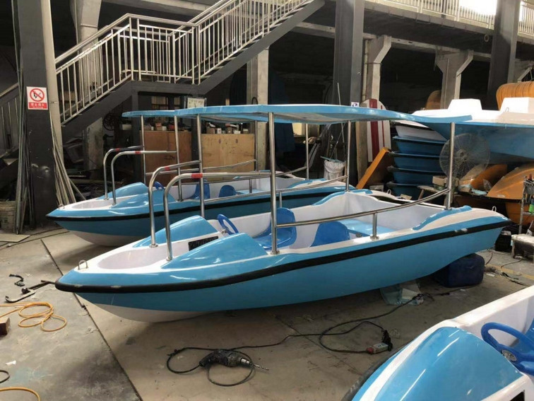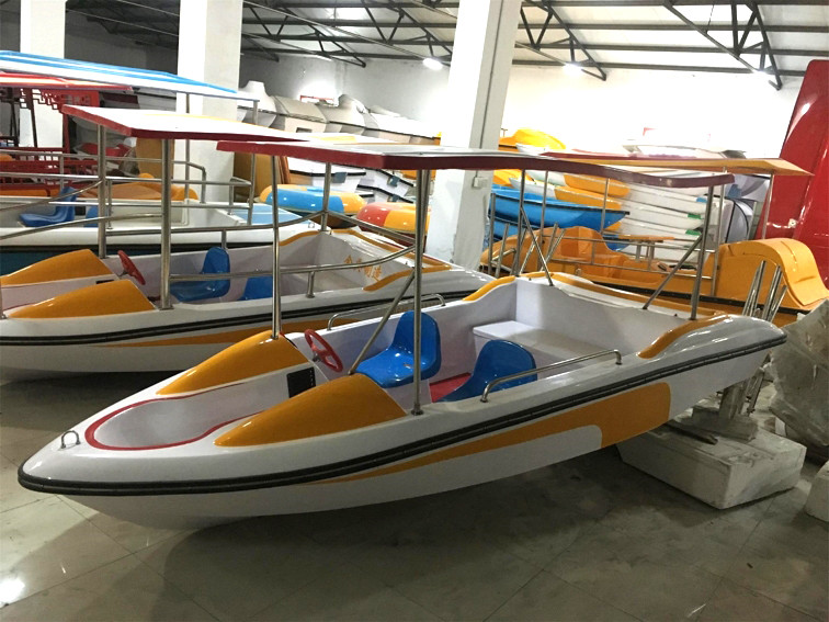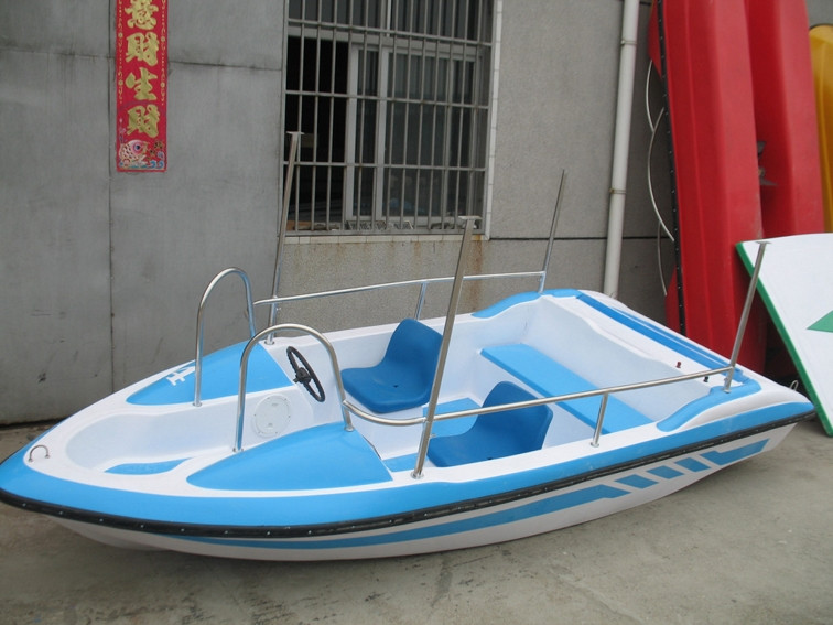 | 特點:船體材質(zhì)玻璃鋼,具有強度高、重量輕、耐腐蝕、不怕日曬雨淋、色彩艷麗、外型美觀的特點。電瓶驅(qū)動,沒有污染,可由游客自行駕駛。可供公園水域、湖泊、水庫、水上游樂。船體寬敞,船頭凹甲板,游客上下方便。 | |||||